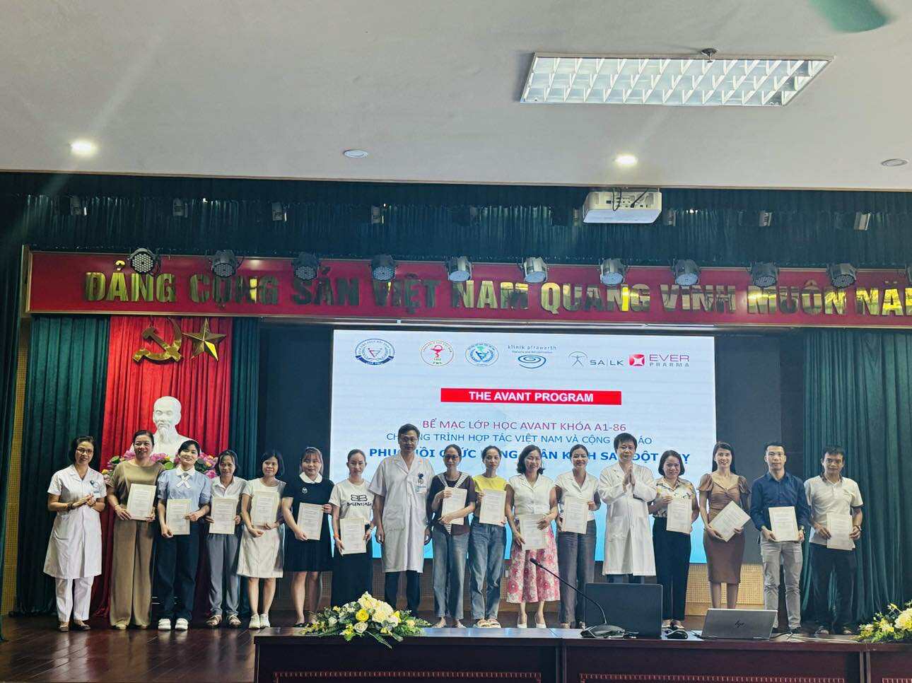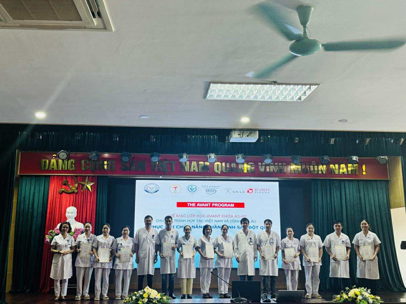 Khoá A1-86 thuộc chương trình AVANT - Phục hồi chức năng Thần kinh sau đột quỵ, tập huấn cho các cán bộ y tế đã diễn ra tại BV PHCN Vĩnh Phúc vào ngày 28-31/07/2025. 87 học viên là các bác sĩ và kỹ thuật viên liên quan đến chuyên ngành đột quỵ, thần kinh, phục hồi chức năng... của các bệnh viện đã hoàn thành khóa học, vượt qua bài kiểm tra cuối khóa và được nhận chứng chỉ CMEs tương đương 48 giờ học quy đổi (cấp bởi Tổng hội Y học Việt Nam, Tổ chức Đột quỵ Thế giới và Hội Phục hồi chức năng Việt Nam).