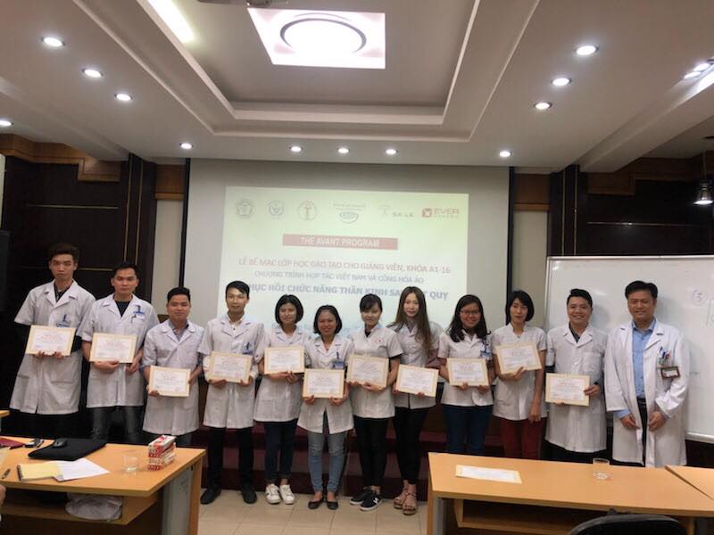 Class A1-16 of the AVANT Program for healthcare professionals took place at Bach Mai Hospital from March 19 to March 23, 2018. 55 doctors and therapists in the field of stroke, neurology, rehabilitation, etc. attended the course, passed the final test and received a CME (Continuing Medical Education) certificate. The certificate, issued by Vietnam Medical Association, World Stroke Organization, and Vietnam Rehabilitation Association, is equivalent to 48 hours of education.