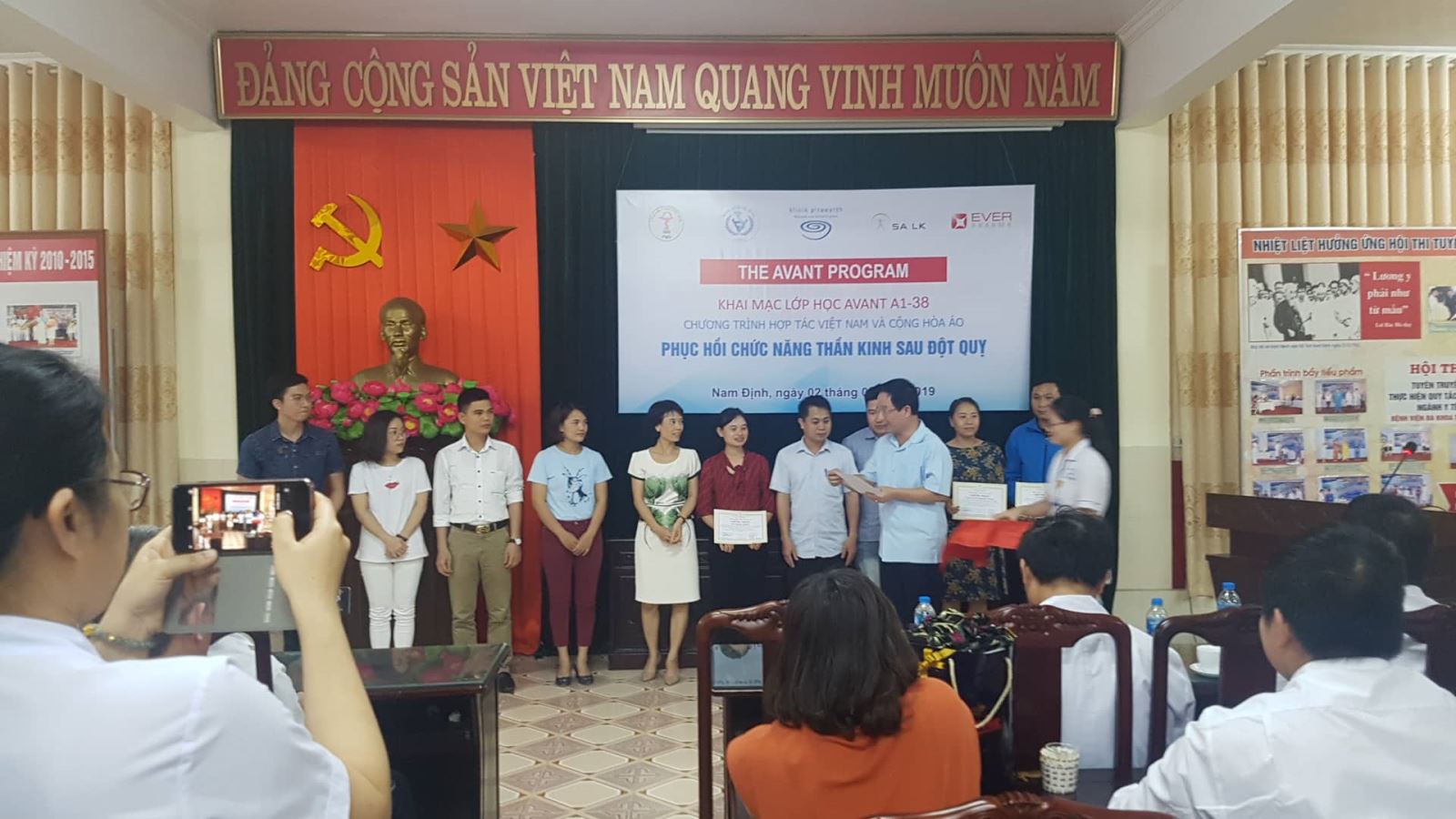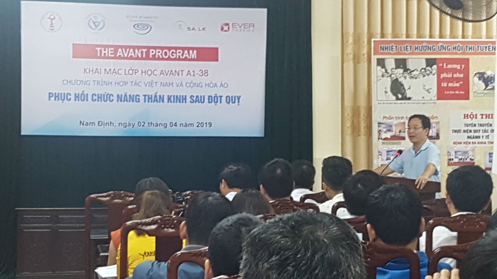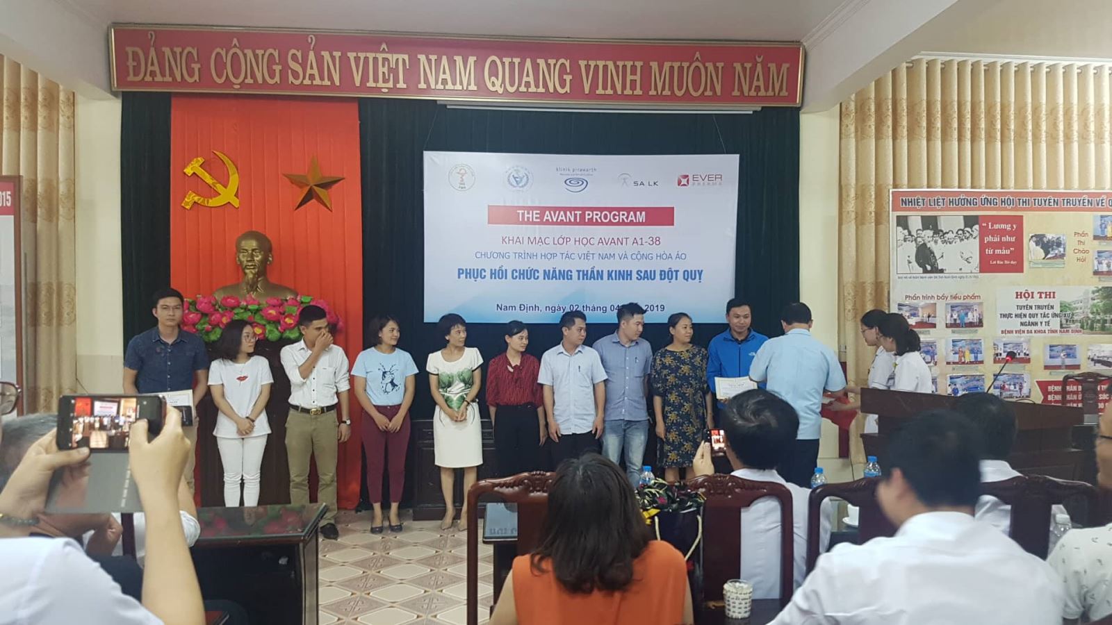 Class A1-38 of the AVANT Program for healthcare professionals took place at Nam Dinh General Hospital from April 2 to April 5, 2019. 90 doctors and therapists in the field of stroke, neurology, rehabilitation, etc. attended the course, passed the final test and received a CME (Continuing Medical Education) certificate. The certificate, issued by Vietnam Medical Association, World Stroke Organization, and Vietnam Rehabilitation Association, is equivalent to 48 hours of education.