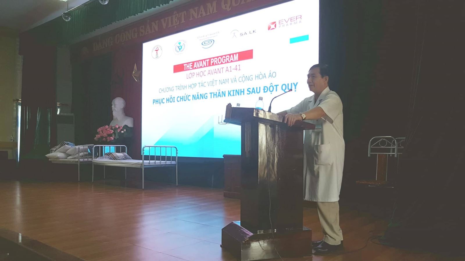 Class A1-41 of the AVANT Program for healthcare professionals took place at Thanh Hoa General Hospital from May 28 to May 31, 2019. 130 doctors and therapists in the field of stroke, neurology, rehabilitation, etc. attended the course, passed the final test and received a CME (Continuing Medical Education) certificate. The certificate, issued by Vietnam Medical Association, World Stroke Organization, and Vietnam Rehabilitation Association, is equivalent to 48 hours of education.