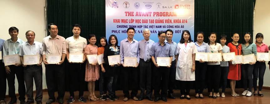 Class A14 of the AVANT Program for healthcare professionals took place at Hue Central Hospital from March 29 to April 4, 2018. 79 doctors and therapists in the field of stroke, neurology, rehabilitation, etc. attended the course, passed the final test and received a CME (Continuing Medical Education) certificate. The certificate, issued by Vietnam Medical Association, World Stroke Organization, and Vietnam Rehabilitation Association, is equivalent to 48 hours of education.