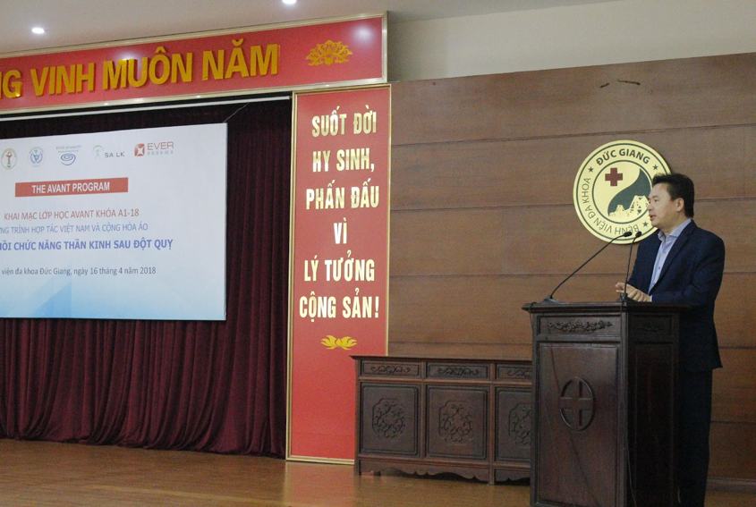 Class A18 of the AVANT Program for healthcare professionals took place at Duc Giang General Hospital from April 16 to April 20, 2018. Doctors and therapists in the field of stroke, neurology, rehabilitation, etc. attended the course, passed the final test and received a CME (Continuing Medical Education) certificate. The certificate, issued by Vietnam Medical Association, World Stroke Organization, and Vietnam Rehabilitation Association, is equivalent to 48 hours of education.