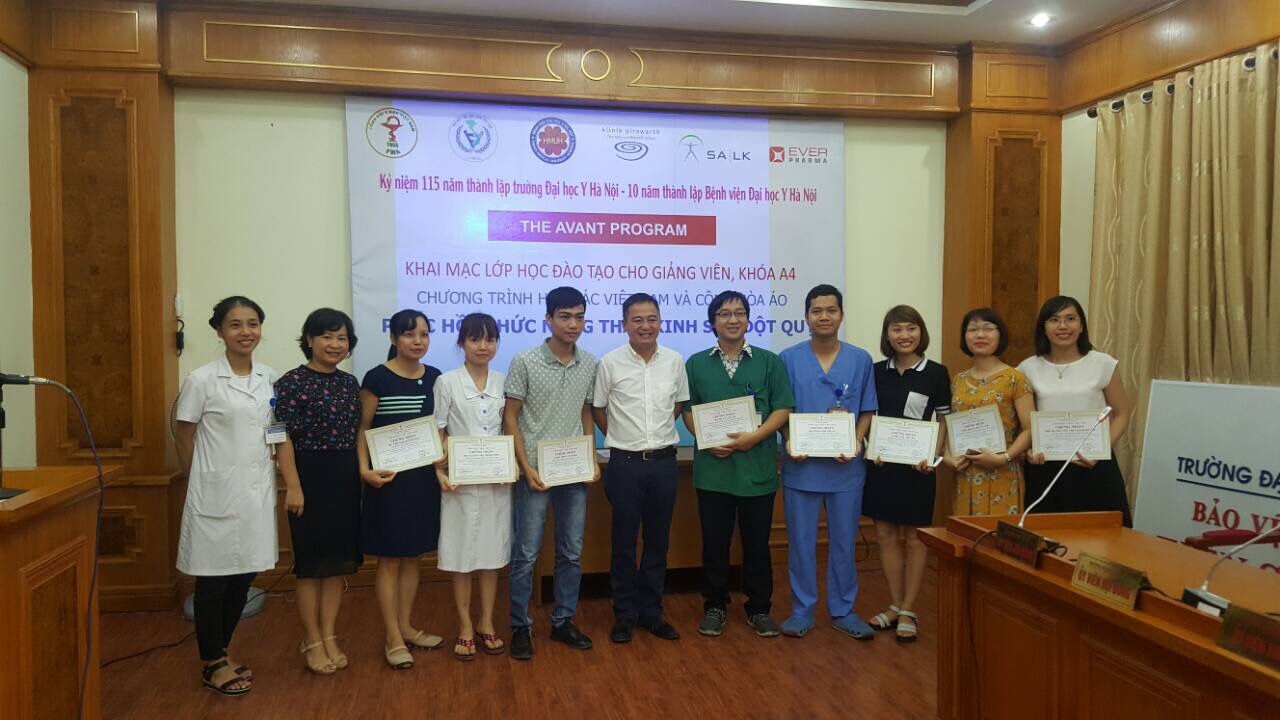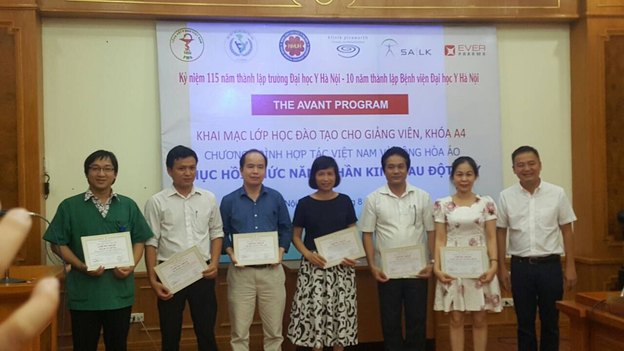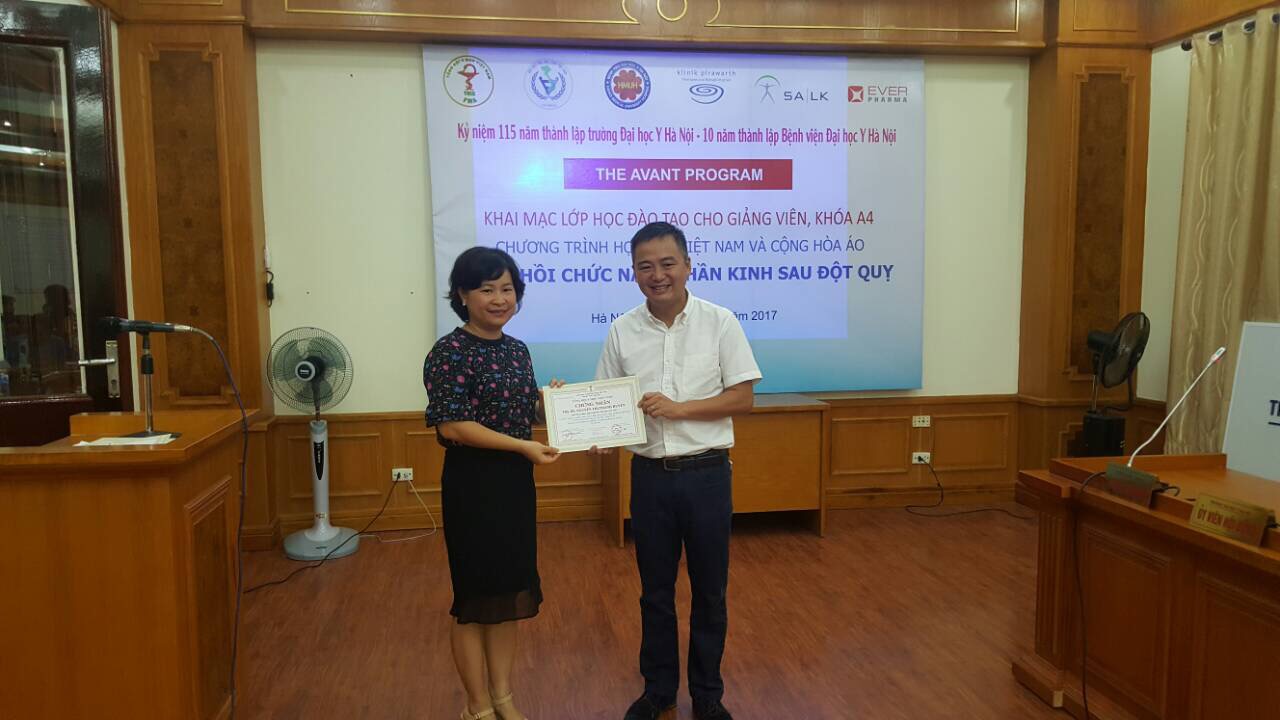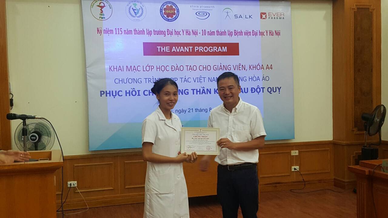 Class A4 of the AVANT Program for healthcare professionals took place at Hanoi Medical University Hospital from August 21 to August 25, 2017. More than 50 doctors and therapists in the field of stroke, neurology, rehabilitation, etc. attended the course, passed the final test and received a CME (Continuing Medical Education) certificate. The certificate, issued by Vietnam Medical Association, World Stroke Organization, and Vietnam Rehabilitation Association, is equivalent to 48 hours of education.