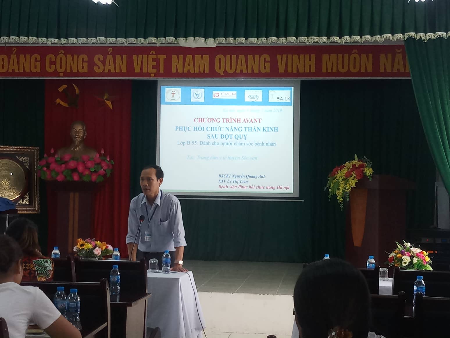 On July 9 2019, class B55 for caregivers under the AVANT program – Neurorehabilitation after Stroke was conducted at Soc Son District Health Center with the attendance of 45 caregivers of stroke patients.