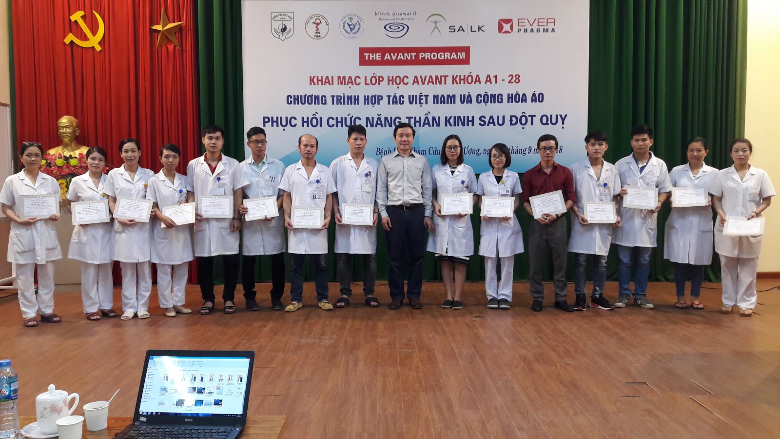 Đến với khoá học, các bác sĩ và kỹ thuật viên được cập nhật các kiến thức lý thuyết và bài tập thực hành chuyên sâu về Phục hồi chức năng thần kinh sau đột quỵ. Đây là khoá tập huấn A1-28 trong chương trình AVANT Hợp tác giữa Việt Nam và Cộng hoà Áo dự kiến đào tạo miễn phí cho 5000 cán bộ y tế và 5000 người nhà bệnh nhân trong 5 năm.