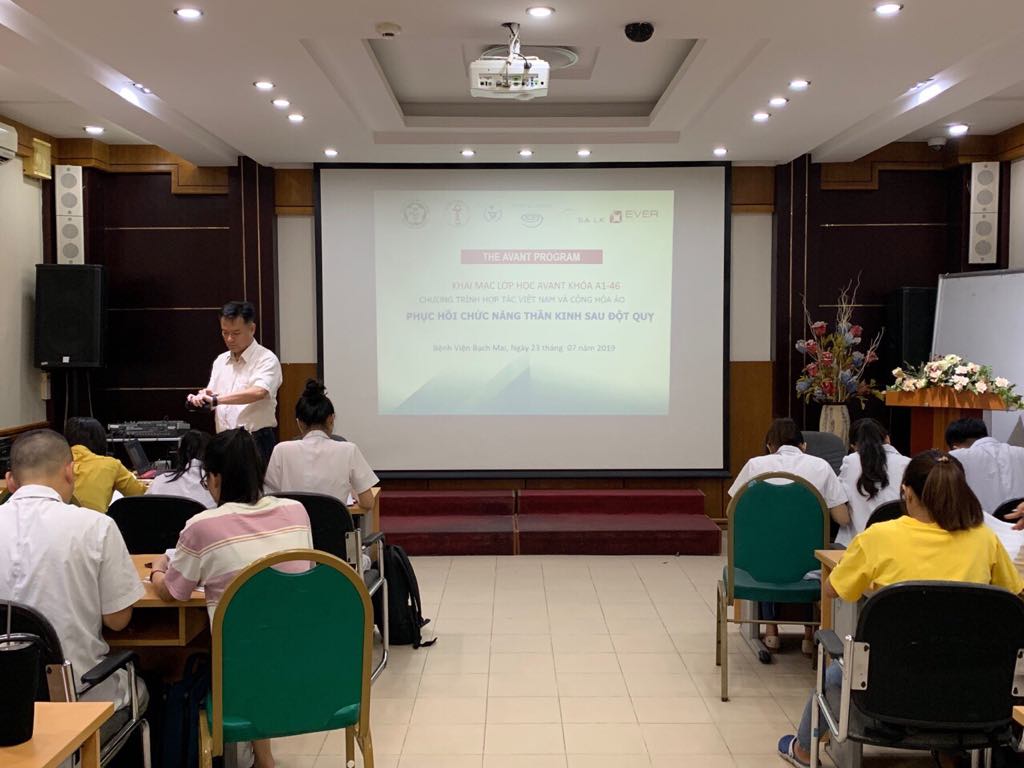Khoá A1-46 thuộc chương trình AVANT - Phục hồi chức năng Thần kinh sau đột quỵ, tập huấn cho các cán bộ y tế đã diễn ra tại Bệnh viện Bạch Mai từ ngày 23 - 26/7/2019. 76 học viên là các bác sĩ và kỹ thuật viên liên quan đến chuyên ngành đột quỵ, thần kinh, phục hồi chức năng... đã hoàn thành khóa học, vượt qua bài kiểm tra cuối khóa và được nhận chứng chỉ CMEs tương đương 48 giờ học quy đổi (cấp bởi Tổng hội Y học Việt Nam, Tổ chức Đột quỵ Thế giới và Hội Phục hồi chức năng Việt Nam).