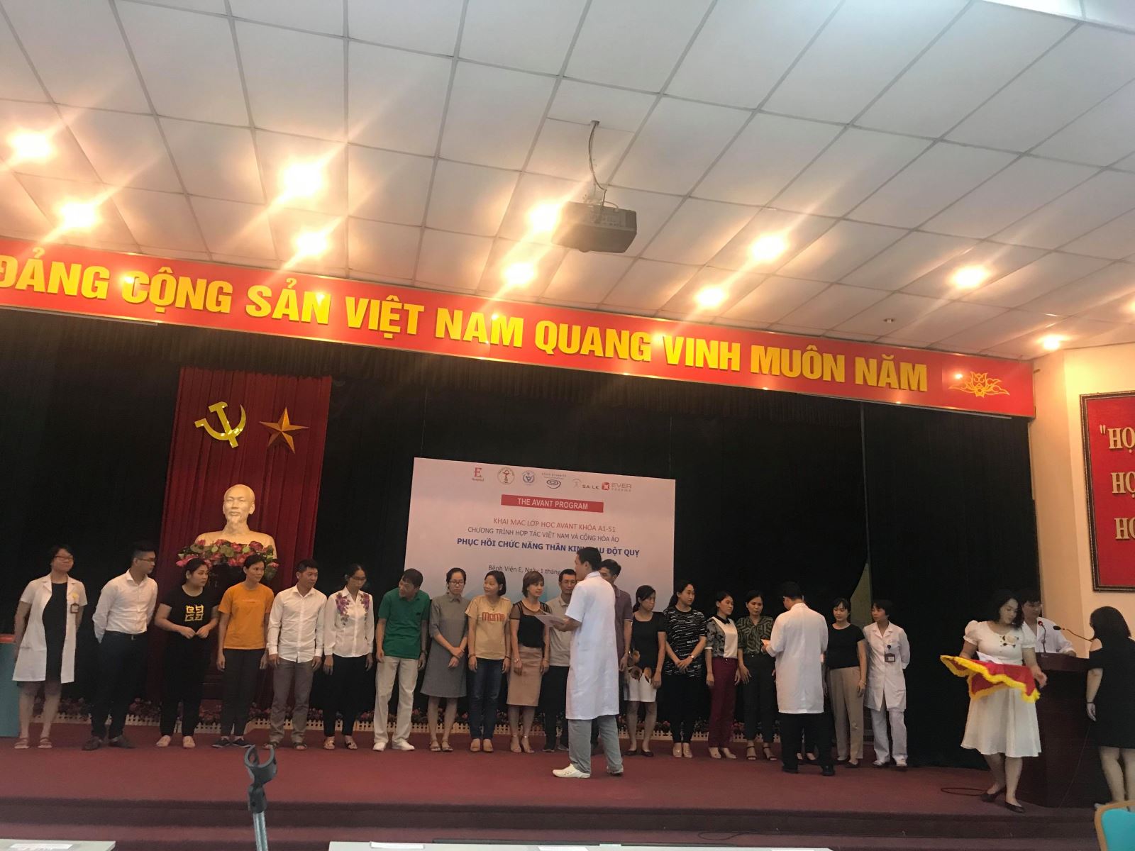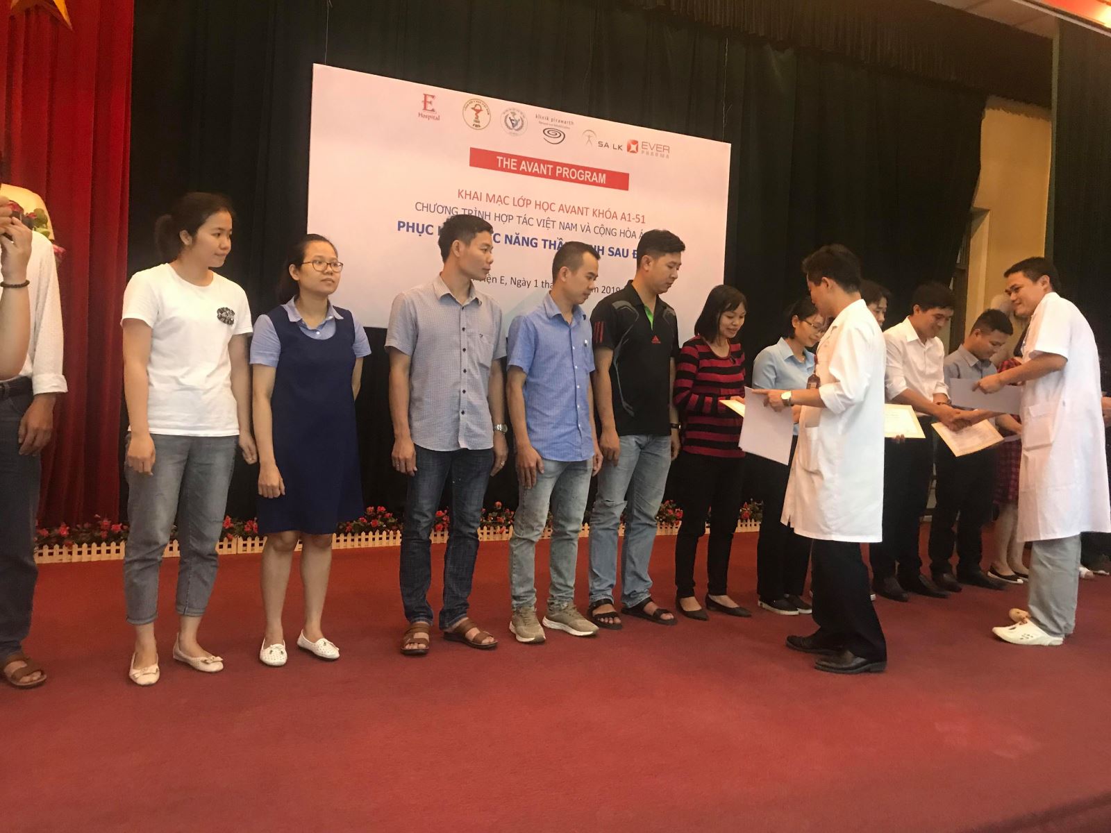 Khoá A1-51 thuộc chương trình AVANT - Phục hồi chức năng Thần kinh sau đột quỵ, tập huấn cho các cán bộ y tế đã diễn ra tại Bệnh viện E Trung ương từ ngày 01/10 - 04/10/2019. 63 học viên là các bác sĩ và kỹ thuật viên liên quan đến chuyên ngành đột quỵ, thần kinh, phục hồi chức năng... đã hoàn thành khóa học, vượt qua bài kiểm tra cuối khóa và được nhận chứng chỉ CMEs tương đương 48 giờ học quy đổi (cấp bởi Tổng hội Y học Việt Nam, Tổ chức Đột quỵ Thế giới và Hội Phục hồi chức năng Việt Nam).
