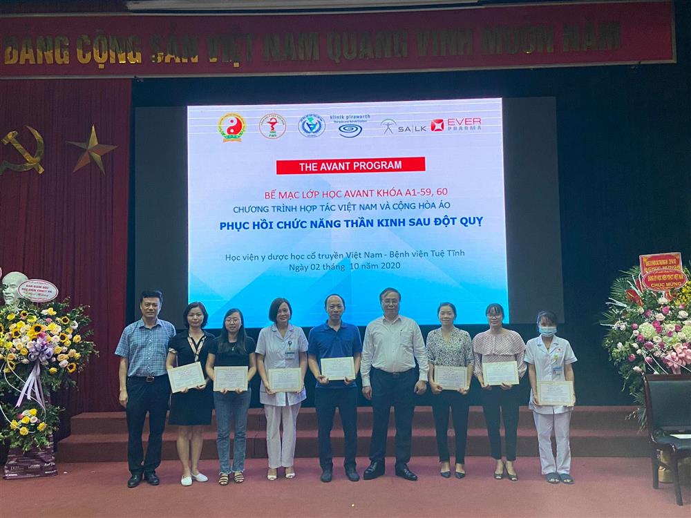 Khoá A1-60 thuộc chương trình AVANT - Phục hồi chức năng Thần kinh sau đột quỵ, tập huấn cho các cán bộ y tế đã diễn ra tại Bệnh viện Tuệ Tĩnh – Học viện Y Dược học cổ truyền Việt Nam vào ngày 27/7; sau đó bị gián đoạn do dịch bệnh COVID và đã được tổ chức tiếp vào ngày 30/9 và 1,2/10/2020. 46 học viên là các bác sĩ và kỹ thuật viên liên quan đến chuyên ngành đột quỵ, thần kinh, phục hồi chức năng... của Bệnh viện Tuệ Tĩnh, Học viện Y Dược học cổ truyền Việt Nam đã hoàn thành khóa học, vượt qua bài kiểm tra cuối khóa và được nhận chứng chỉ CMEs tương đương 48 giờ học quy đổi (cấp bởi Tổng hội Y học Việt Nam, Tổ chức Đột quỵ Thế giới và Hội Phục hồi chức năng Việt Nam).