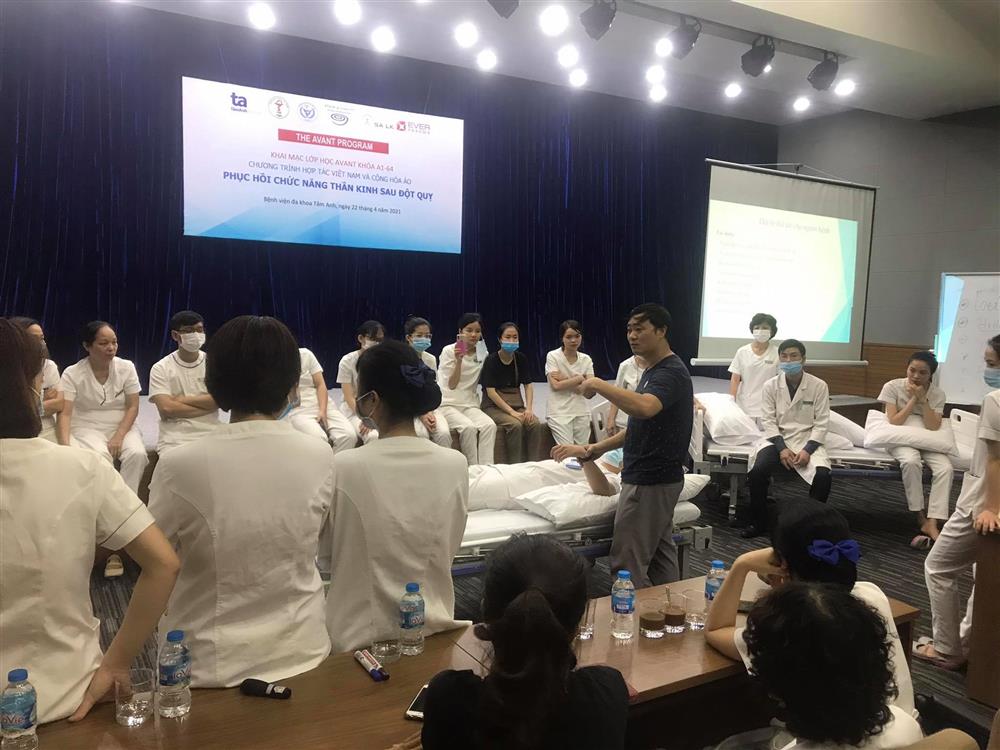 Khoá A1-64 thuộc chương trình AVANT - Phục hồi chức năng Thần kinh sau đột quỵ, tập huấn cho các cán bộ y tế đã diễn ra tại Bệnh viện đa khoa Tâm Anh từ 22/4 - 25/4/2021. 70 học viên là các bác sĩ và kỹ thuật viên tại Bệnh viện đa khoa Tâm Anh liên quan đến chuyên ngành đột quỵ, thần kinh, phục hồi chức năng... đã hoàn thành khóa học, vượt qua bài kiểm tra cuối khóa và được nhận chứng chỉ CMEs tương đương 48 giờ học quy đổi (cấp bởi Tổng hội Y học Việt Nam, Tổ chức Đột quỵ Thế giới và Hội Phục hồi chức năng Việt Nam).