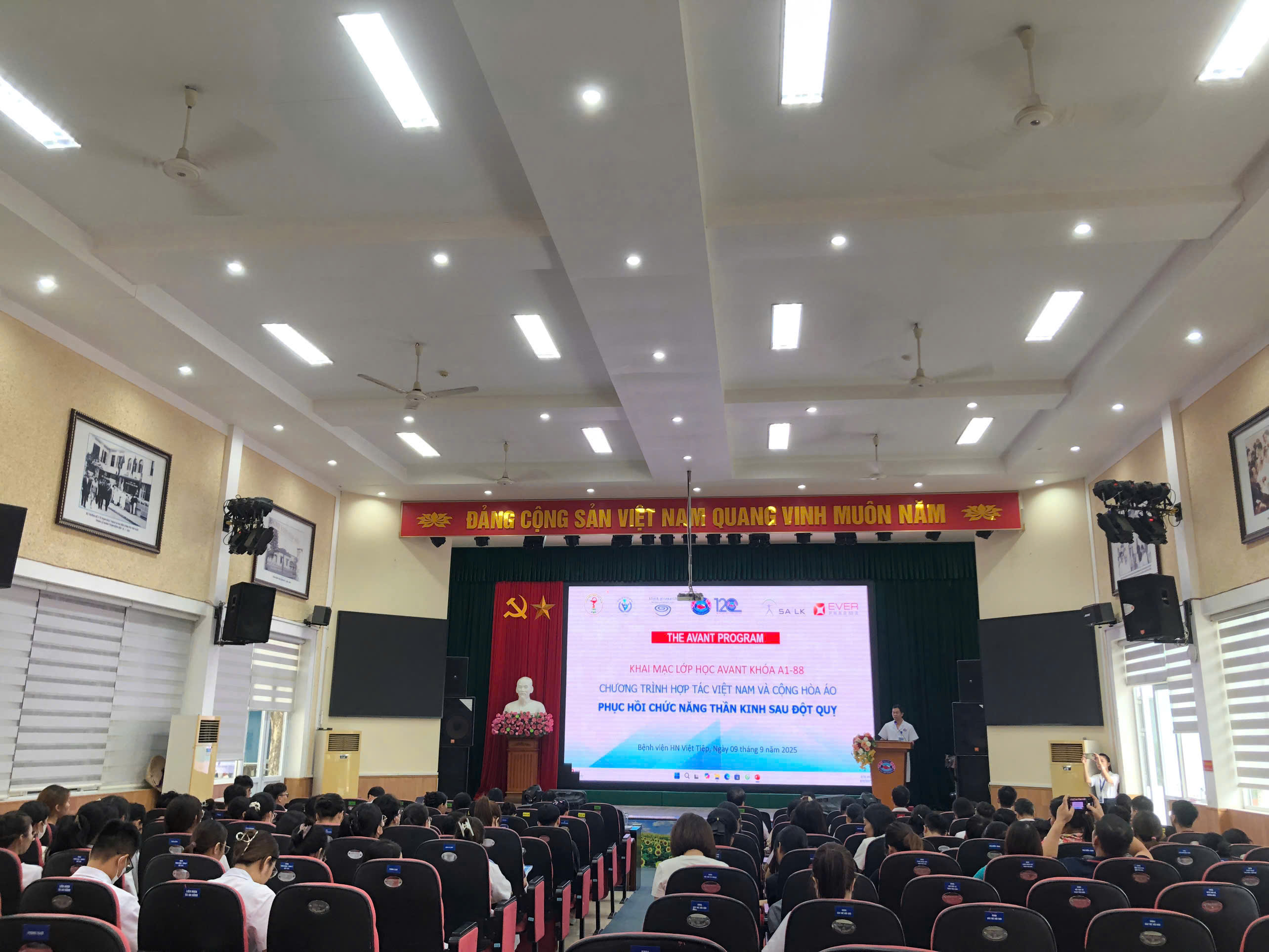 Khoá A1-82 thuộc chương trình AVANT - Phục hồi chức năng Thần kinh sau đột quỵ, tập huấn cho các cán bộ y tế đã diễn ra tại Bệnh viện Hữu Nghị Việt Tiệp vào ngày 9-12/09/2025. 77 học viên là các bác sĩ và kỹ thuật viên liên quan đến chuyên ngành đột quỵ, thần kinh, phục hồi chức năng... của các bệnh viện đã hoàn thành khóa học, vượt qua bài kiểm tra cuối khóa và được nhận chứng chỉ CMEs tương đương 48 giờ học quy đổi (cấp bởi Tổng hội Y học Việt Nam, Tổ chức Đột quỵ Thế giới và Hội Phục hồi chức năng Việt Nam).