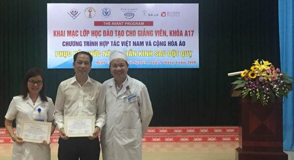 EVER Pharma với sự hỗ trợ chuyên môn của Tổ chức Đột quỵ thế giới, Tổng hội Y học Việt Nam và Hội Phục hồi chức năng Việt Nam triển khai chương trình Phục hồi chức năng (PHCN) thần kinh cho bệnh nhân sau đột quỵ, phối hợp giữa Việt Nam và Cộng hòa Áo. Trong khuôn khổ chương trình, lớp AVANT A17 đã được triển khai tại tại Bệnh viện Trung ương Thái Nguyên từ ngày 9 – 13/4/2018.