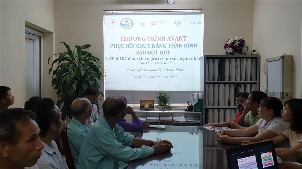 Ngày 23/06/2020 vừa qua, tại Bệnh viện Đa khoa Vĩnh Phúc đã diễn ra lớp tập huấn phuc hồi chức năng sau đột quỵ dành cho người chăm sóc bệnh nhân trong khuôn khổ chương trình AVANT với sự tham dự của người nhà bệnh nhân đột quỵ