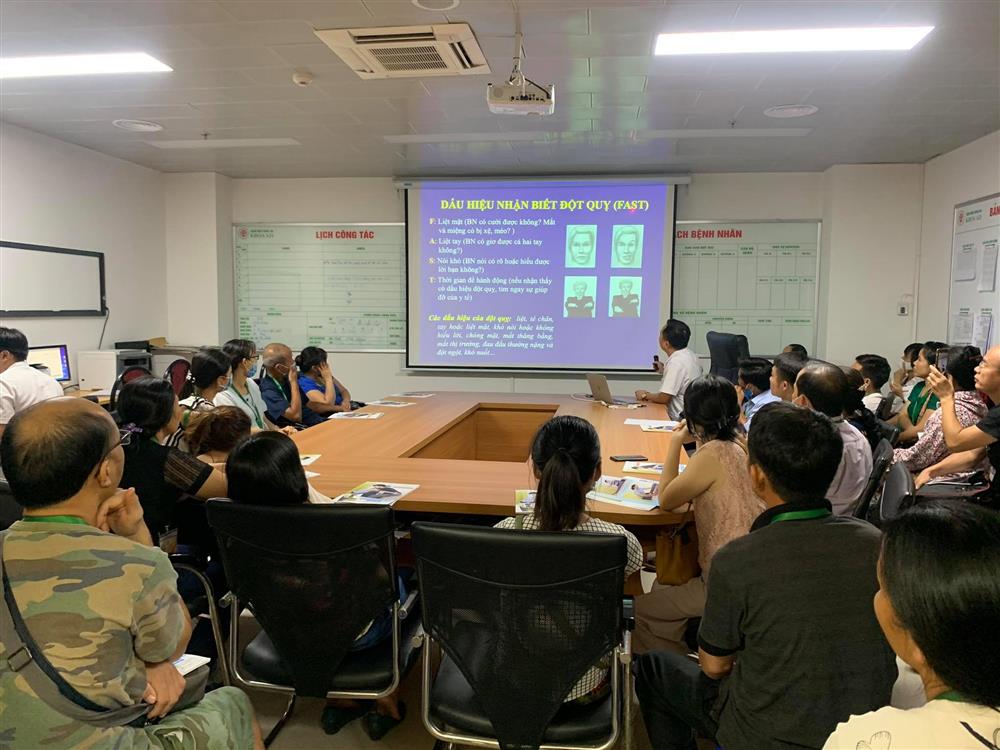 Ngày 16/07/2020 vừa qua, tại Trung tâm Đột quỵ, bệnh viện Quân đội 108 đã diễn ra lớp tập huấn phuc hồi chức năng sau đột quỵ dành cho người chăm sóc bệnh nhân trong khuôn khổ chương trình AVANT với sự tham dự của các điều dưỡng và người nhà bệnh nhân đột quỵ.