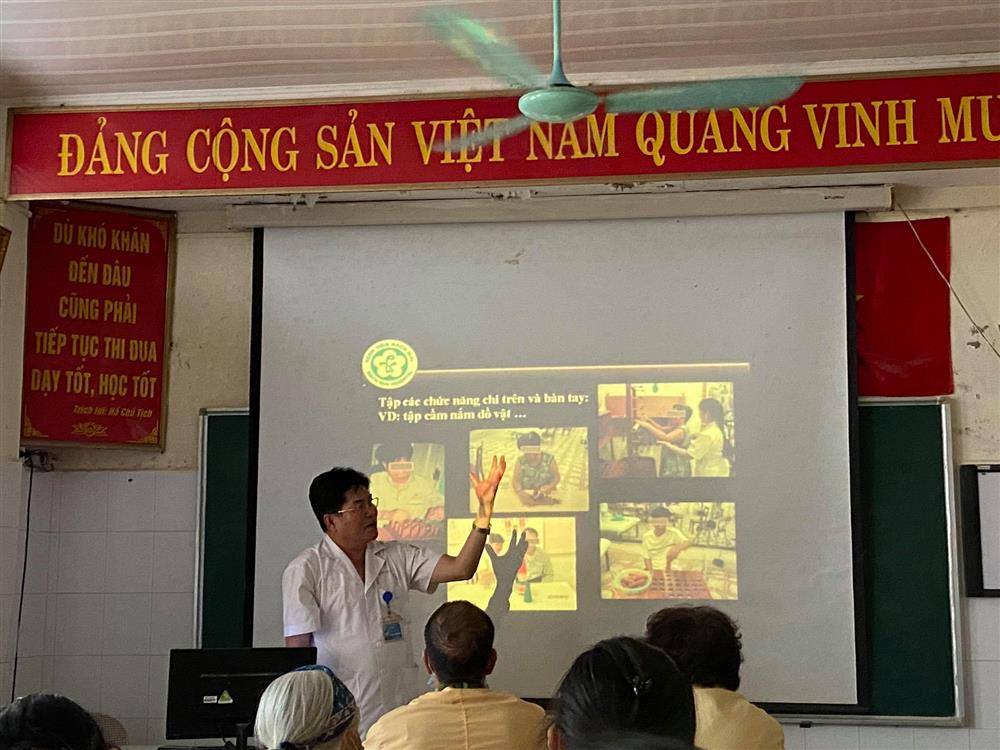 Đến với lớp học, người chăm sóc bệnh nhân sẽ được phát miễn phí cuốn sách Các bài tập phục hồi chức năng thần kinh cơ bản, kết hợp với video minh họa các bài tập. Đồng thời, học viên sẽ được các bác sĩ và kỹ thuật viên chuyên khoa đột quỵ, phục hồi chức năng... hướng dẫn tận tình cách sử dụng cuốn sách và video, giúp họ có thể chăm sóc và tự tập PHCN cho bệnh nhân tại nhà, giúp đẩy nhanh tiến trình phục đưa bệnh nhân sớm trở về cuộc sống bình thường.