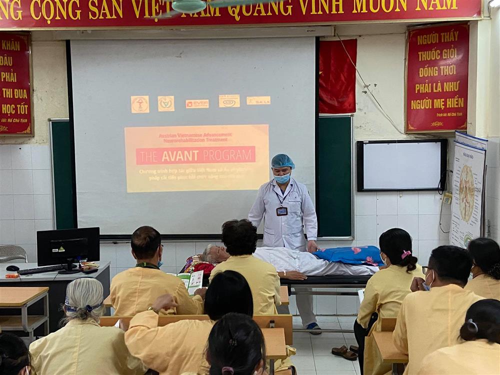 Ngày 8/10/2020 vừa qua, tại bệnh viện 103 đã diễn ra lớp tập huấn phuc hồi chức năng sau đột quỵ dành cho người chăm sóc bệnh nhân trong khuôn khổ chương trình AVANT với sự tham dự của người chăm sóc và người nhà bệnh nhân đột quỵ.