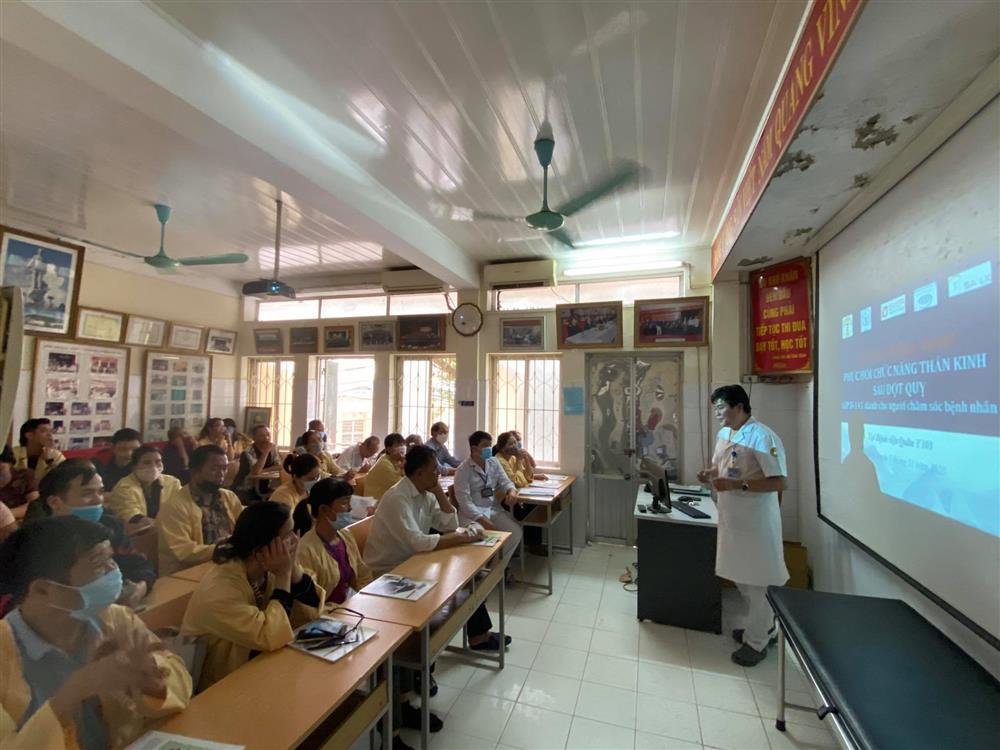 Đến với lớp học, người chăm sóc bệnh nhân sẽ được phát miễn phí cuốn sách Các bài tập phục hồi chức năng thần kinh cơ bản, kết hợp với video minh họa các bài tập. Đồng thời, học viên sẽ được các bác sĩ và kỹ thuật viên chuyên khoa đột quỵ, phục hồi chức năng... hướng dẫn tận tình cách sử dụng cuốn sách và video, giúp họ có thể chăm sóc và tự tập PHCN cho bệnh nhân tại nhà, giúp đẩy nhanh tiến trình phục đưa bệnh nhân sớm trở về cuộc sống bình thường.