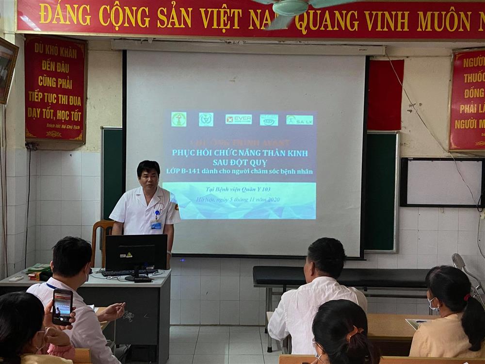 Ngày 5/11/2020 vừa qua, tại bệnh viện 103 đã diễn ra lớp tập huấn phuc hồi chức năng sau đột quỵ dành cho người chăm sóc bệnh nhân trong khuôn khổ chương trình AVANT với sự tham dự của người chăm sóc và người nhà bệnh nhân đột quỵ.