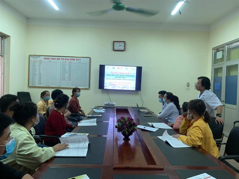 Ngày 28/12/2020 vừa qua, tại bệnh viện đa khoa Hoà Bình đã diễn ra lớp tập huấn phuc hồi chức năng sau đột quỵ dành cho người chăm sóc bệnh nhân trong khuôn khổ chương trình AVANT với sự tham dự của người chăm sóc và người nhà bệnh nhân đột quỵ.