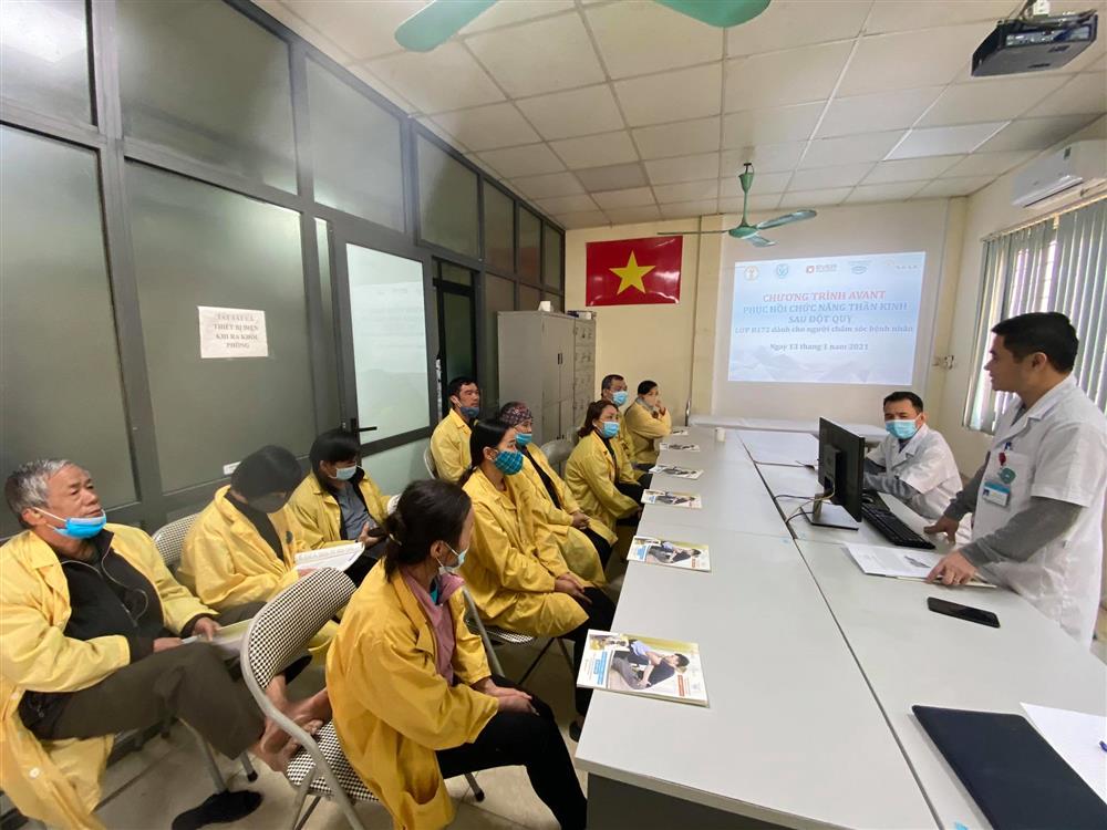 Ngày 13/01/2021 vừa qua, tại bệnh viện đa khoa Hà Đông đã diễn ra lớp tập huấn phuc hồi chức năng sau đột quỵ dành cho người chăm sóc bệnh nhân trong khuôn khổ chương trình AVANT với sự tham dự của người chăm sóc và người nhà bệnh nhân đột quỵ.