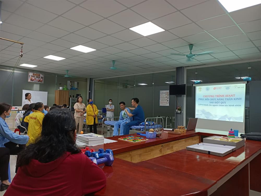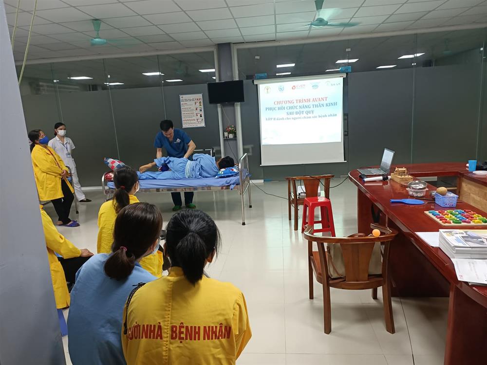 Ngày 13/04/2021 vừa qua, tại bệnh viện TƯ Thái Nguyên đã diễn ra lớp tập huấn phuc hồi chức năng sau đột quỵ dành cho người chăm sóc bệnh nhân trong khuôn khổ chương trình AVANT với sự tham dự của người chăm sóc và người nhà bệnh nhân đột quỵ.