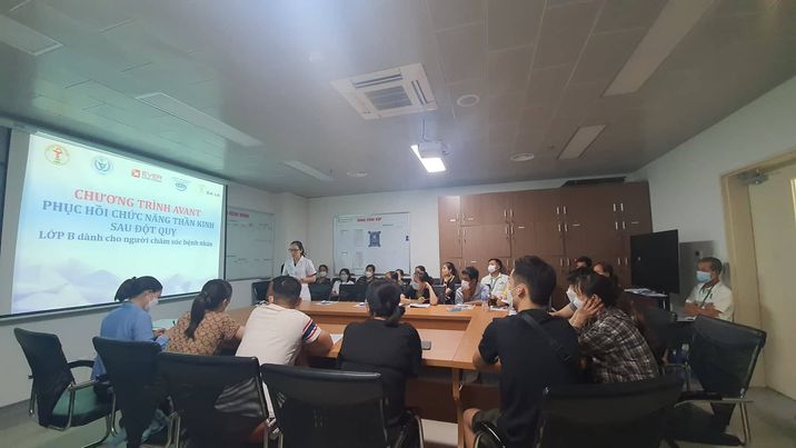 Ngày 21/07/2022 vừa qua, tại Bệnh viện 108 đã diễn ra lớp tập huấn phục hồi chức năng sau đột quỵ dành cho người chăm sóc bệnh nhân trong khuôn khổ chương trình AVANT với sự tham dự của người chăm sóc và người nhà bệnh nhân đột quỵ.