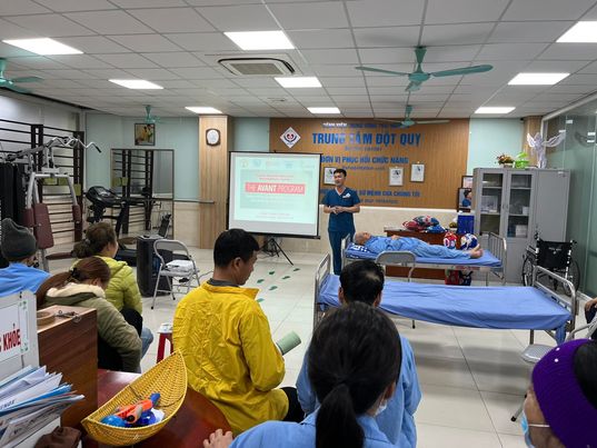 Ngày 15/03/2023 vừa qua, tại Bệnh viện Trung ương Thái Nguyên đã diễn ra lớp tập huấn phục hồi chức năng sau đột quỵ dành cho người chăm sóc bệnh nhân trong khuôn khổ chương trình AVANT với sự tham dự của người chăm sóc và người nhà bệnh nhân đột quỵ.