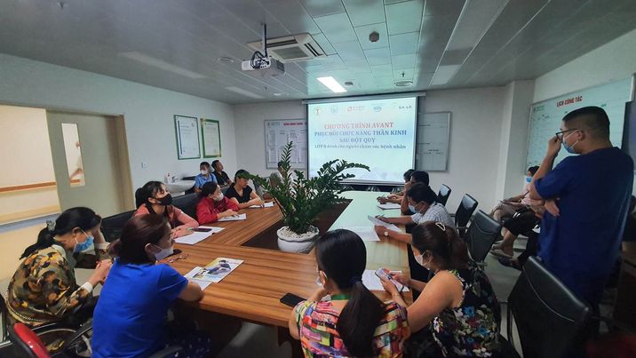 Ngày 20/06/2023 vừa qua, tại khoa Cấp cứu - Bệnh viện 108 đã diễn ra lớp tập huấn phục hồi chức năng sau đột quỵ dành cho người chăm sóc bệnh nhân trong khuôn khổ chương trình AVANT với sự tham dự của người chăm sóc và người nhà bệnh nhân đột quỵ.