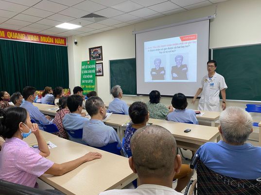 Ngày 20/07/2023 vừa qua, tại Bệnh viện 103 đã diễn ra lớp tập huấn phục hồi chức năng sau đột quỵ dành cho người chăm sóc bệnh nhân trong khuôn khổ chương trình AVANT với sự tham dự của người chăm sóc và người nhà bệnh nhân đột quỵ.