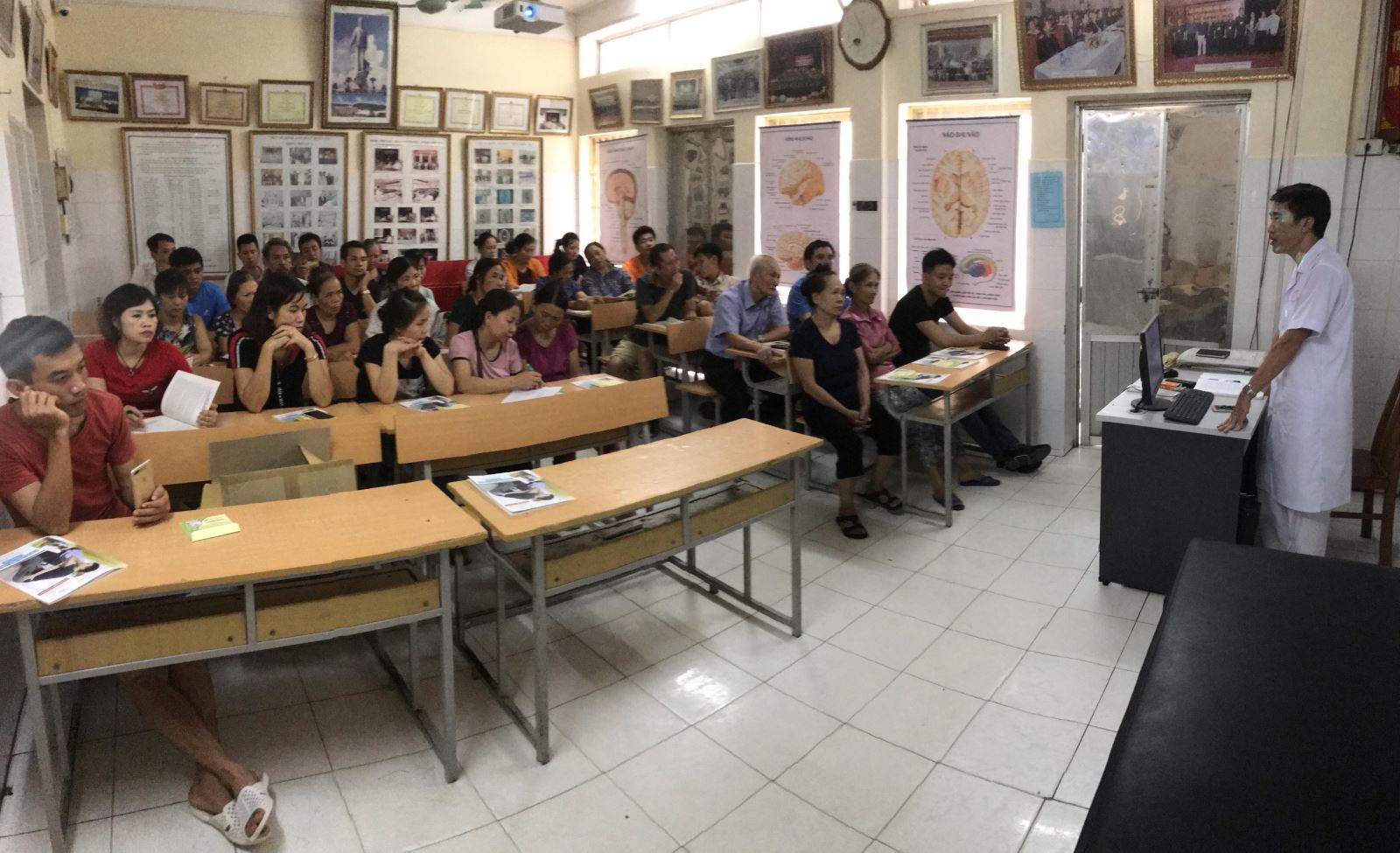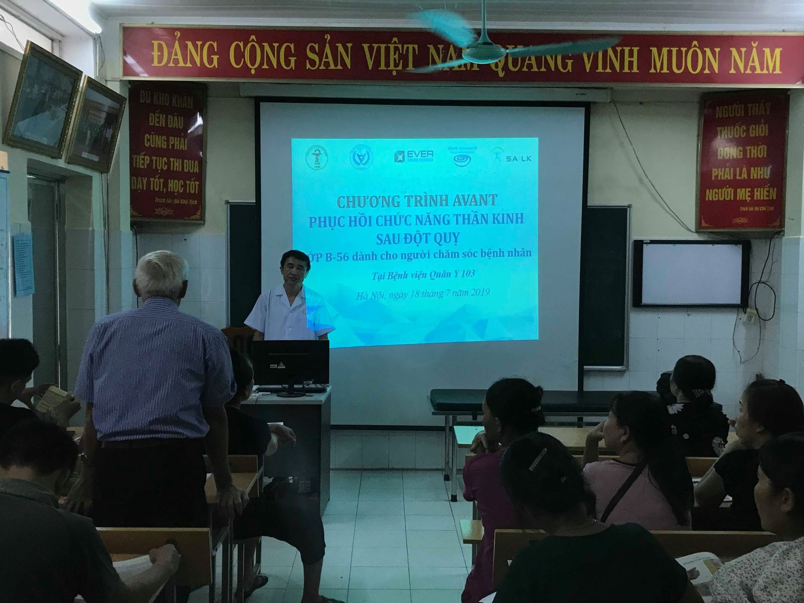 Ngày 18/7/2019 vừa qua, lớp B56 dành cho người chăm sóc bệnh nhân trong khuôn khổ chương trình AVANT – Phục hồi chức năng thần kinh sau đột quỵ đã được tiến hành tại Trung tâm Đột quỵ Bệnh viện Quân y 103 với sự tham dự của 25 người nhà bệnh nhân đột quỵ.