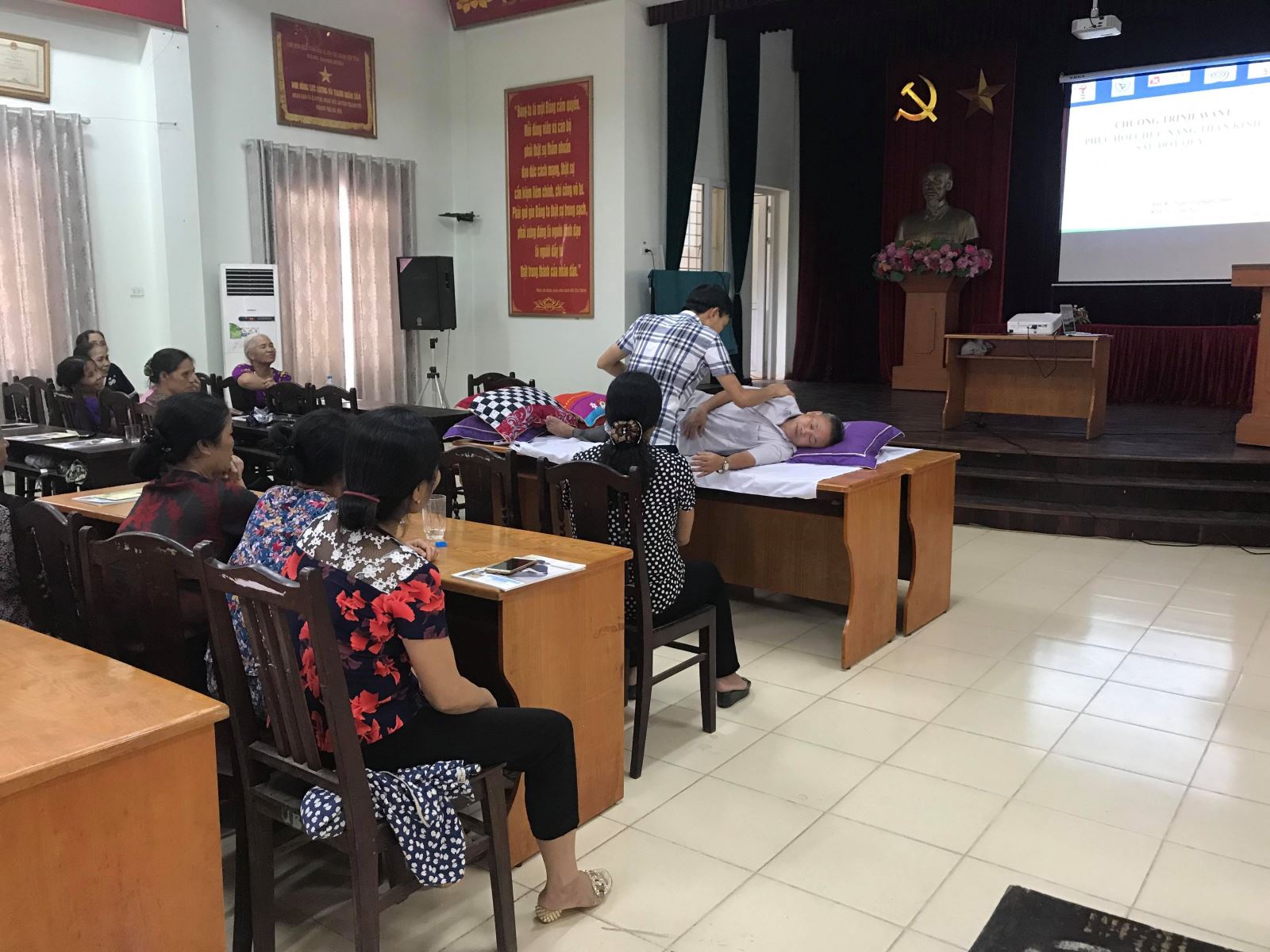 Ngày 19/7/2019 vừa qua, lớp B57 dành cho người chăm sóc bệnh nhân trong khuôn khổ chương trình AVANT – Phục hồi chức năng thần kinh sau đột quỵ đã được tiến hành tại Huyện Thanh Trì với sự tham dự của 100 người nhà bệnh nhân đột quỵ.